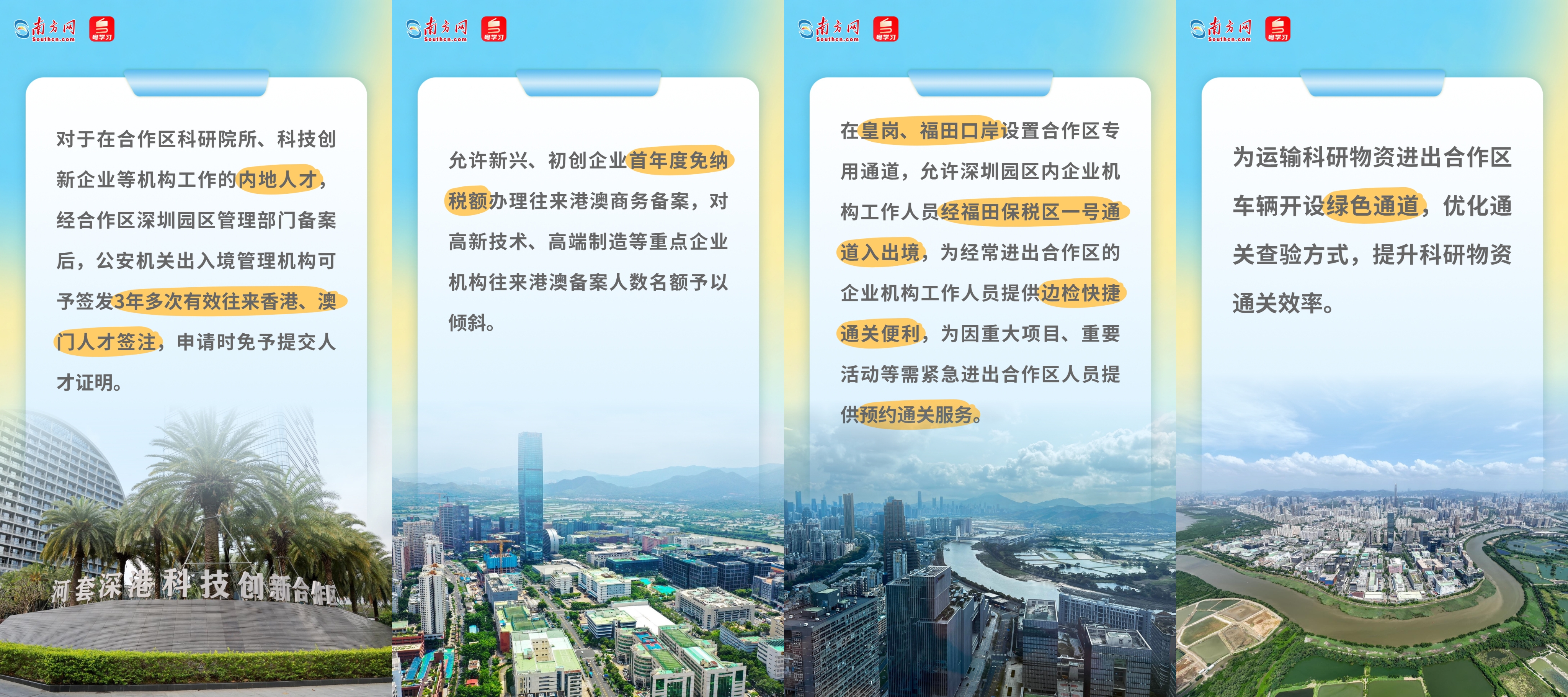 河套深港科技创新合作区获得专项政策支持。在合作区工作的科研人才可享受更便利的签注办理流程,新兴企业首年度可免纳税额办理商务备案,皇岗、福田口岸还设置了专用通道。这些措施将有力促进深港创新要素跨境流动,助力广东打造国际科技创新中心。>>相关报道
