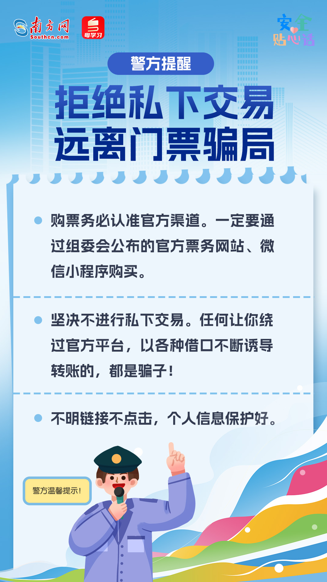 警惕第十五届全国运动会将于2025年11月9日至21日举行。警惕目前,门票赛事门票已正式开启预售。诈骗据广州市反诈中心消息,套路贴心近期涉及全运会门票诈骗的份购警情已零星出现。有哪些诈骗套路呢?票防骗我们应如何识别?这份购票防骗指南,请收好👇